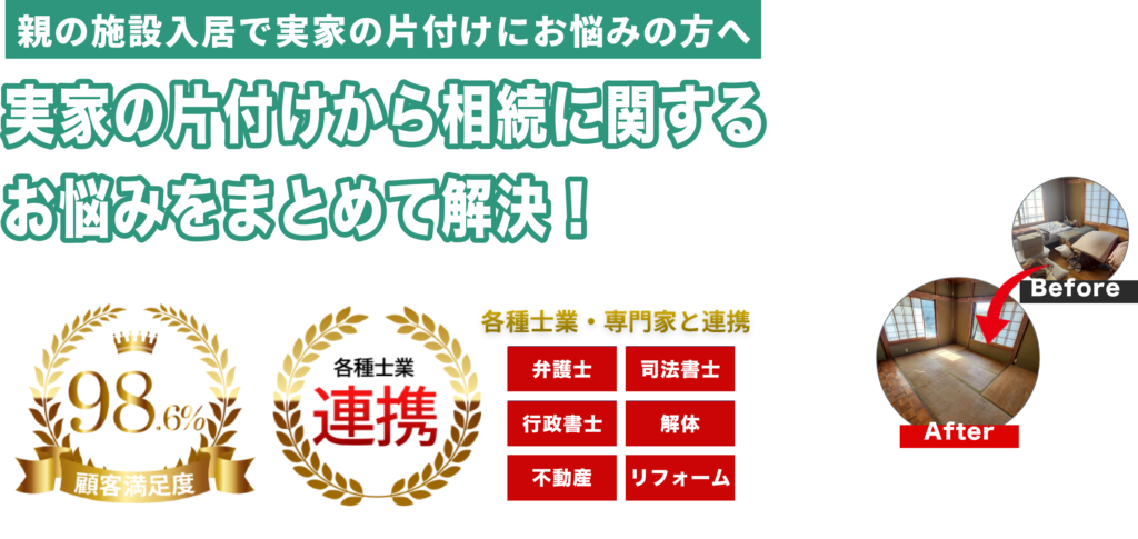 遺品整理は、ただの「片付け」ではなく、大切な思い出を整理する作業です。 メモリアスでは、遺品整理士の資格を持ったスタッフ が対応し、ご家族の気持ちに寄り添いながら丁寧に整理を行います。 不要なものは適切に処分し、買取可能な品は査定を行い、買取価格を差し引いてコストを削減 できます。 「思い出の品をどうしたらいいかわからない…」とお悩みの方も、プロのサポートで安心してお任せいただけます。